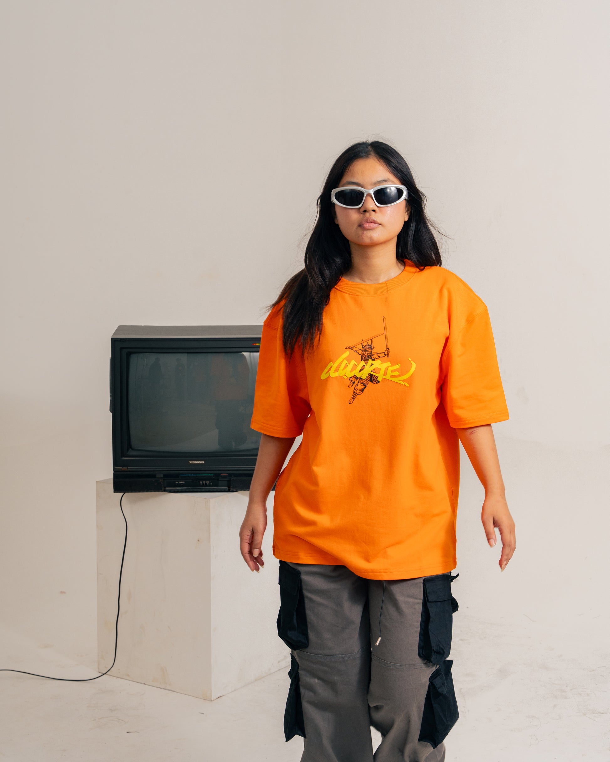 Introducing our Oversized Unisex Pop Orange Samurai T-Shirt